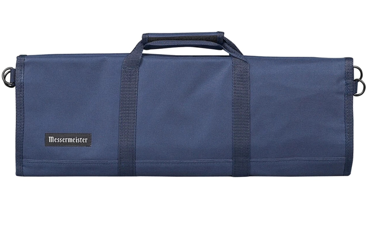 Securely store and transport your knives, knife steels and accessories with Messermeisters’s 12 Pocket Navy Blue Knife Roll.