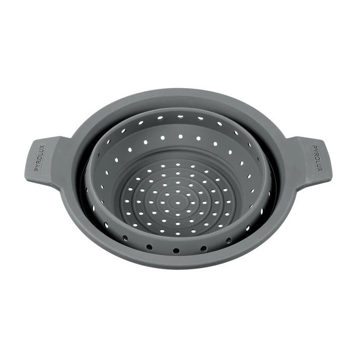 This versatile colander and steamer is made from premuim grade, food safe (BPA free) silicone with a reinforced frame for strength and durability. It fits pots from 20cm – 24cm, is heat resistant up to 210 degrees C and can even be used as a splatter guard or trivet for your pot. With this many uses and its convenient colapsible design it is an essential space saving item for your kitchen.