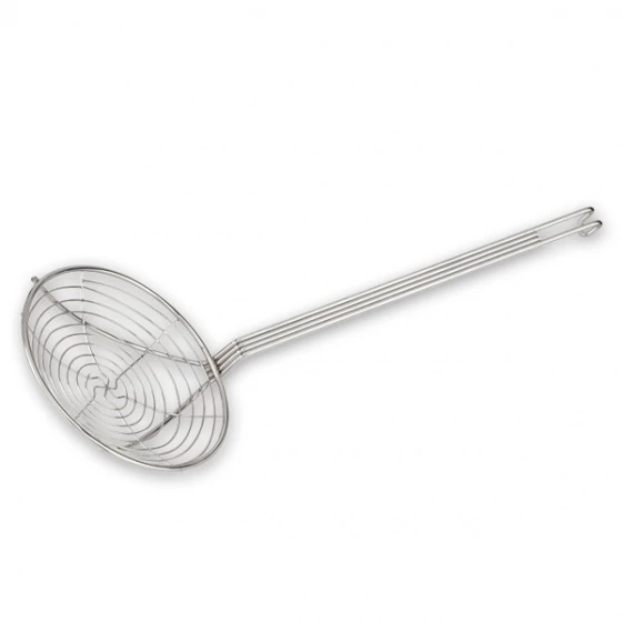 For safely removing food from hot liquids and oil, blanching vegetables, skimming foam from broth and removing congealed food off the top of liquids.