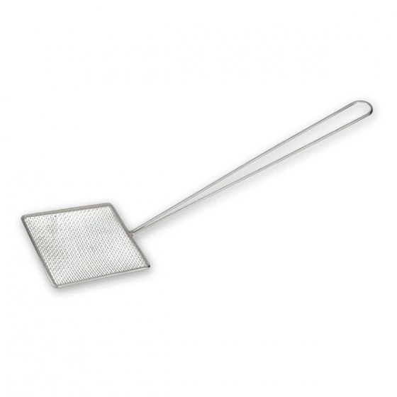 For safely removing food from hot liquids and oil, blanching vegetables, skimming foam from broth and removing food off the top of liquids.